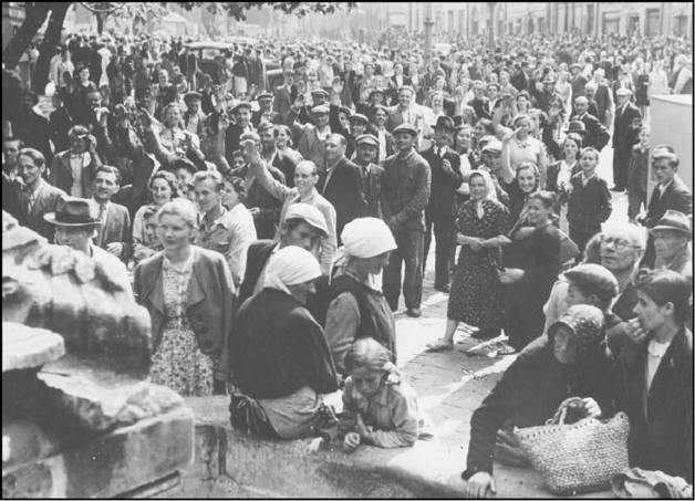 1941年7月,利沃夫[125]民众欢迎纳粹德国军队的到来。