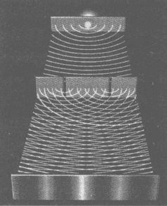 在量子力学发展的早期,人们理解波动的重要性质是线性叠加,这样就导致干涉现象。最直观的是在河面上扔两个石子,每个石子都激发一个波前为圆的波。当两个波相遇时,干涉现象就出现了,也就是说,如果在一点处两个波都高于水平面,叠加的结果是更高,如果在一点处两个波都低于水平面,叠加后的波就更低,如果一个高一个低,叠加的结果是相抵消,如图8-1。