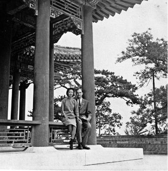 一九四七年,张充和与傅汉思在北平颐和园。当时充和正在北大教书法和昆曲。(纽约海外昆曲社提供)