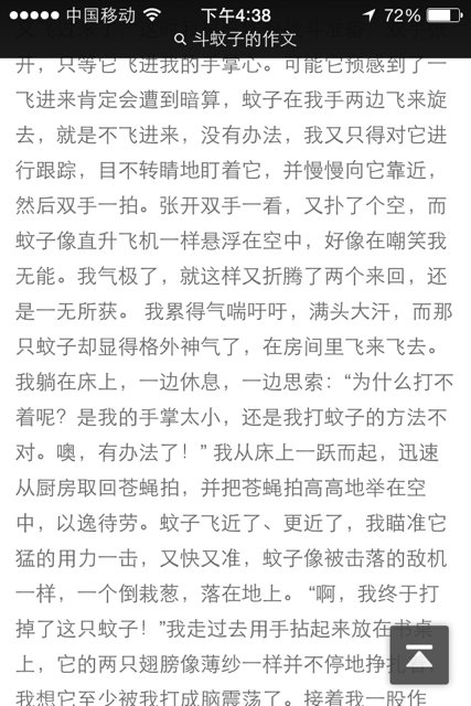 有一天下午,我在英语辅导班写做业,灿烂的秋阳透过大大的玻璃窗照在我的身上暖暖的,突然,一只蚊子在我的耳边唱起了歌,抬头一看它如同一架直升飞机似的盘旋着,这可恶的坏家伙要在我的身左右毒手。