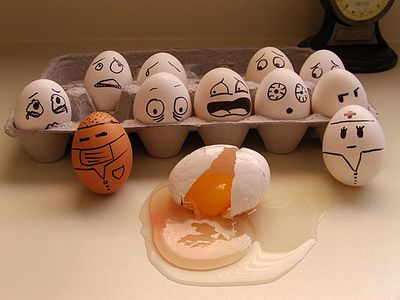2、围观鸡蛋:象征喜欢凑热闹的好奇观众,有伤心同情的,有幸灾乐祸的,有纯粹打酱油凑热闹的。体现了人性的复杂,因为众多围观者心理各有所不同,自然就有话可写,相当容易切入上手。较好的立意可从鞭笞对伤者沒有爱心,赞许同情者。