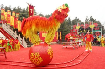 5、 引狮人以古代武士装扮,手握旋转绣球,配以京锣、鼓钹、逗引瑞狮。狮子在“狮子郎”的引导下,表演腾翻、扑跌、跳跃、登高、朝拜等技巧,并有走梅花桩、窜桌子、踩滚球等高难度响应。南派狮舞以表演“文狮”为主,表演时讲究表情,有搔痒、抖毛、舔毛等响应,惟妙惟肖,逗人喜爱,也有难度较大的吐球等技巧。