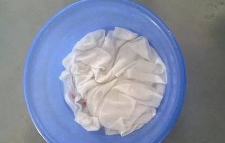 将布料放入脸盆,用凉水浸湿,这样子可让颜色渗透得更好。衣服干的情况下纤维上的浆会阻碍上色。