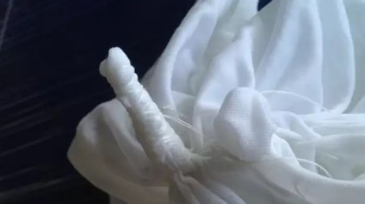 2.扎。这是扎染关键性的一步,同样是体现染后效果和花纹设计感的一步。可以按照个人喜好选扎多扎少。扎得越结实越密,颜色越少进到,也就比较多留白,图案相当清晰。