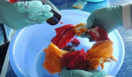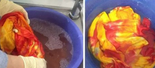 4.洗浮色。清洗染好的布料洗掉浮色。