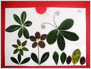 星期五,老师布置了一个有趣的做业-------制作树叶贴画。