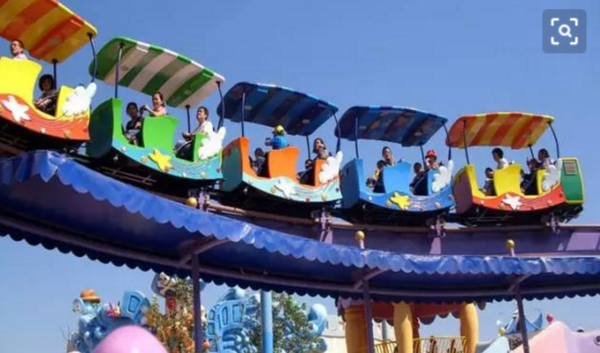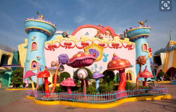 大巴车终于达到了目的地!我们急匆匆地从车上跑下来,一进大门,大转盘上写的“嬉戏谷”3个字就映入我的眼帘。