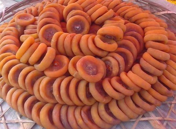 西安黄桂柿子饼,也叫水晶柿子饼,是一种用柿子和面制成的风味食品。西安黄桂柿子饼,是用临潼县产的"火晶柿子"为原料制作成的。