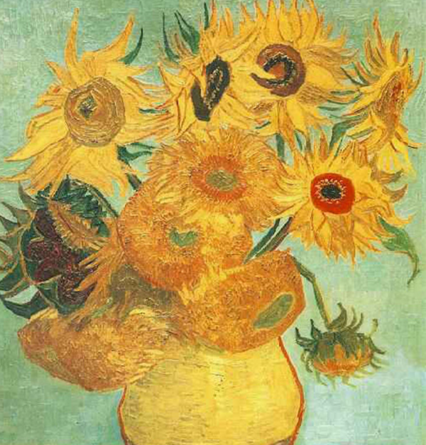 梵高通过向日葵向后人传递着这么一个信息:怀着感激之心对待家人,怀着善良之心对待他人,怀着坦诚之心对待朋友,怀着赤诚之心对待工作,怀着感恩之心对待生活,怀着一颗欣赏之心享受艺术,宛若眼前那灿若花开的向日葵。