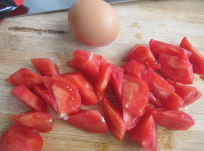 1、西红柿洗净切块,鸡蛋一个并打碎;