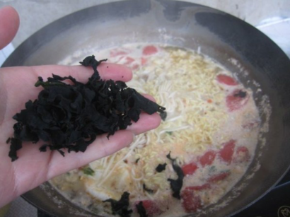 用料:挂面;番茄;鸡蛋;裙带菜;调味品。